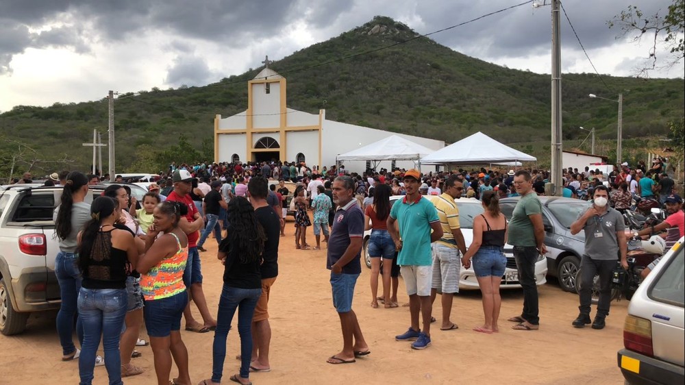 O velório das primas Vitória Maíza de Moura, de 11 anos, Thayná de Moura Silva, de 12 anos, e Karine Oliveira Moura, de 13 anos, aconteceu na Igreja Católica do Sítio Guaritas e o sepultamento no cemitério da Vila Vitorino.
