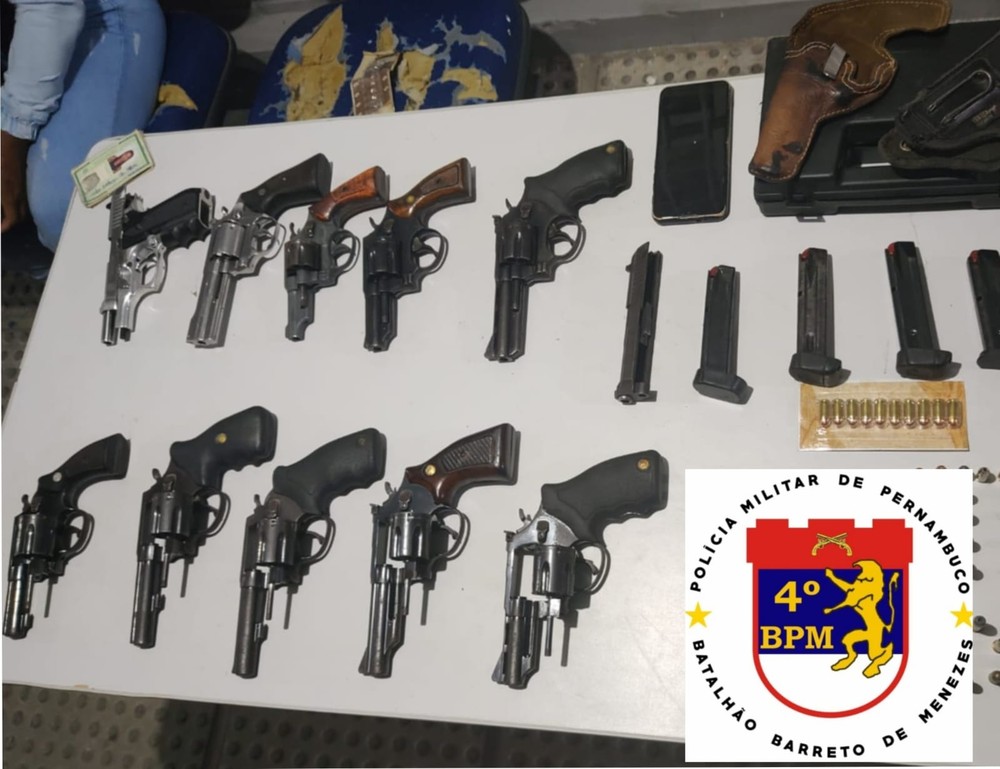Segundo a PM, a equipe recebeu a denúncia de um comércio ilegal de armamentos na Rua Matheus Castro Lima, no Centro da cidade. Na residência do suspeito foram apreendidos, escondidos em um cofre, sete revólveres calibre 38, dois revólveres calibre 32, duas pistolas calibre 380, quatro carregadores calibre 380, 32 munições calibre 9mm, 32 munições calibre 380, 26 munições calibre 38 e quatro munições calibre 32.